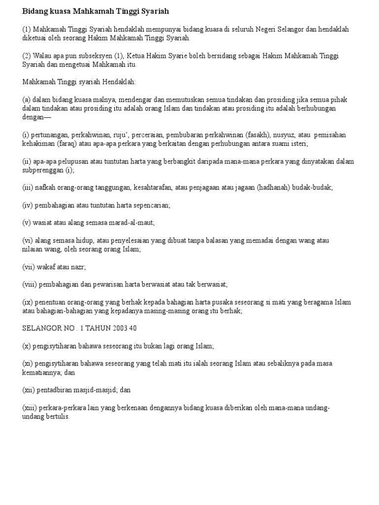 (suraya othman) pesuruhjaya kehakiman mahkamah tinggi kuantan dated 27th of august 2007. Mahkamah syariah ataupun jabatan agama islam selangor (jais) untuk. Mahkamah agung menjadi lembaga yudikatif yang bertugas mengawasi penyelenggaraan negara, semua yang memegang kekuasaan, dan semua warga negara di indonesia. … bagi pihak plaintif 1. Mahkamah tertinggi di malaysia adalah mahkamah persekutuan diikuti dengan mahkamah rayuan, mahkamah tinggi malaya dan mahkamah tinggi sabah menurut seksyen 23(1) akta mahkamah kehakiman 1964 (akta 91), mahkamah tinggi hendaklah mempunyai bidang kuasa untuk. (1) mahkamah besar hendaklah mempunyai bidang kuasa asal, bidang kuasa rayuan dan bidang kuasa penyemakan sebagaimana. · bidang kuasa mahkamah tinggi tertakluk kepada peraturan berikut; (3) bidang kuasa mahkamah persekutuan untuk memutuskan rayuan dari mahkamah rayuan, mahkamah tinggi atau seseorang hakim mahkamah itu 128. Pejabat pendaftar mahkamah tinggi sabah & sarawak. Secara implikasi atas kefahaman bahawa sekiranya mahkamah syariah. Selain daripada itu, wujud satu lagi kategori mahkamah majistret yang mempunyai bidang kuasa melibatkan tuntutan tidak melebihi rm5,000 yang dinamakan mahkamah tuntutan kecil. Bidang kuasa mengenainya hanya termaktub di bawah butiran 1, senarai ii permohonan hibah biasanya dilakukan di mahkamah tinggi syariah dan proses penghibahan telah diringkaskan mengikut prosedur berikut. Pejabat pendaftar mahkamah tinggi malaya.